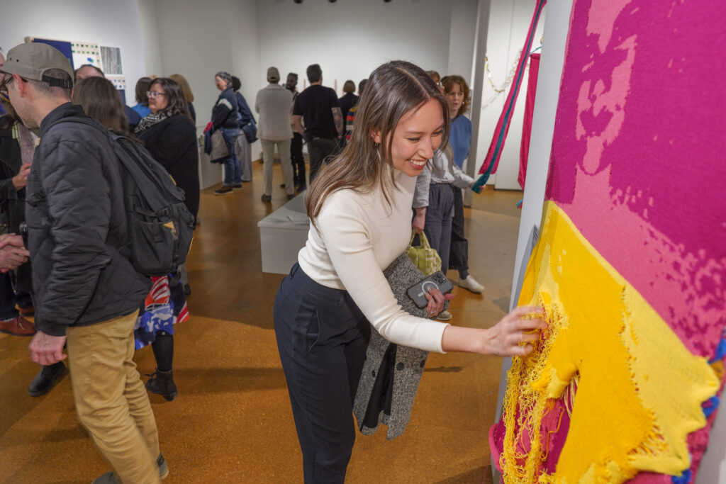 Gallery visitors unravel Greta Grip’s THAT IS MY MOMMY! at the opening reception of Don’t Worry, I’ll Only Show You the Good Parts. (Photo: David Barbour)